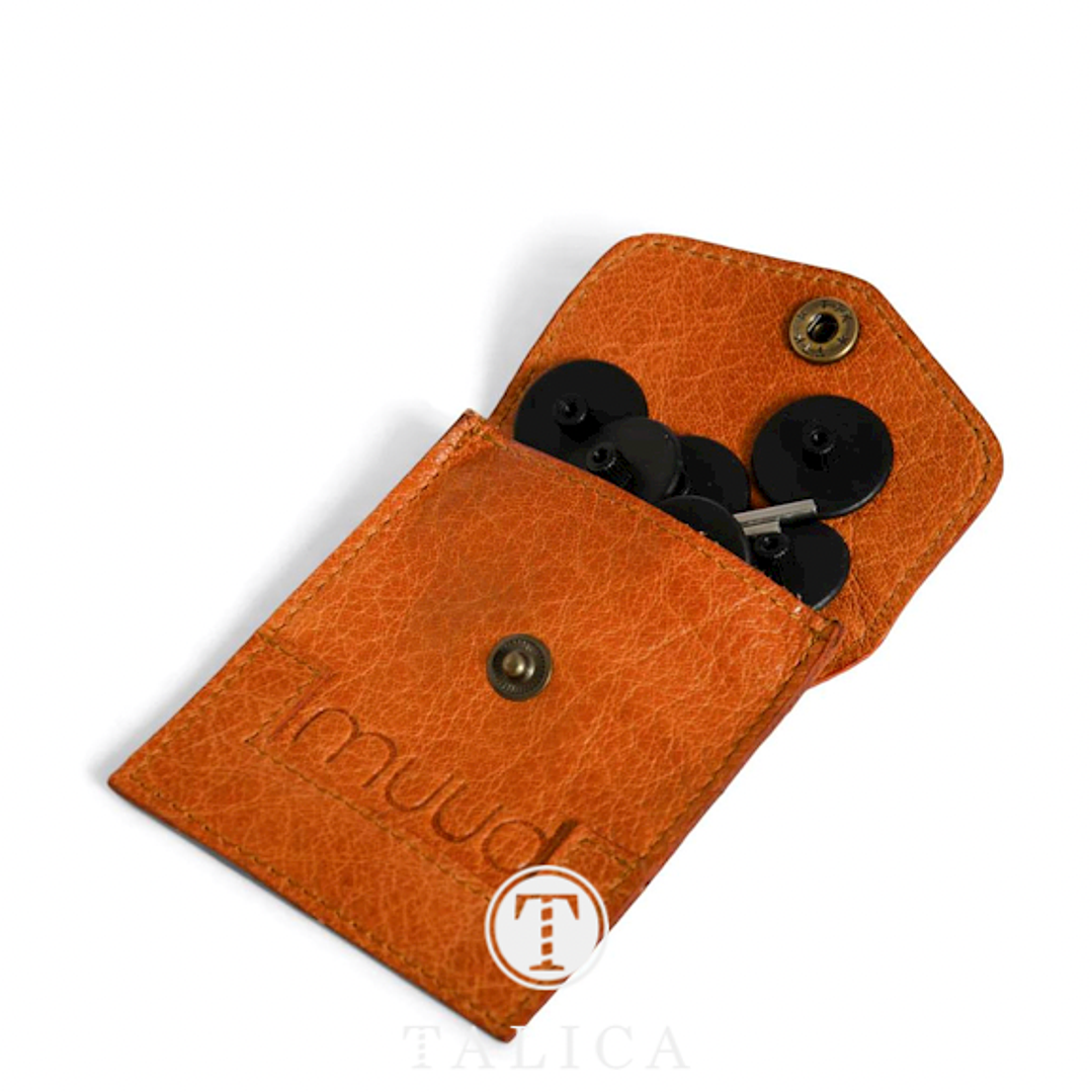 O belo estojo de couro é perfeito para tecelões e artesãos que apreciam qualidade premium, itens artesanais e elegância clássica. O estojo prático pode ser facilmente colocado dentro de uma bolsa de projeto maior. O estojo fecha com um botão para garantir que os teus menores acessórios estejam facilmente acessíveis.