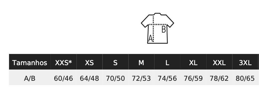 Modelo unissexo é tubular enquanto a de corte cintado é cortada e cosida Cuidados Tamanhos Modelo de corte cintado